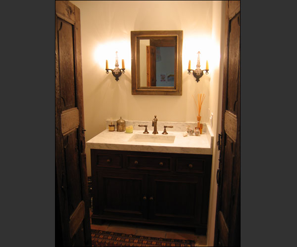 A small Spanish-style bathroom designed by Jeff Doubet: Project completed in Santa Barbara, California.