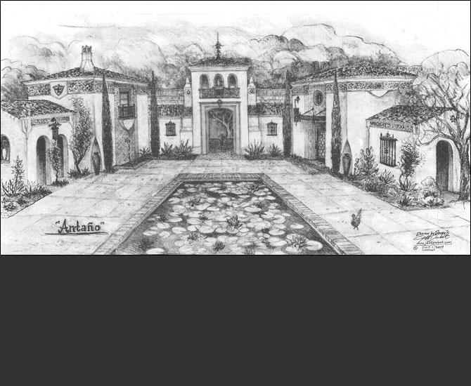 Concept design rendering by Jeff Doubet: Ornate Spanish Colonial Revival estate home in Santa Barbara, CA.
