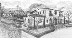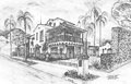 Jeff Doubét design: Hand drawn renderings, sketches and concept design drawings for Spanish-style homes and landscapes in Santa Barbara and Montecito, California.